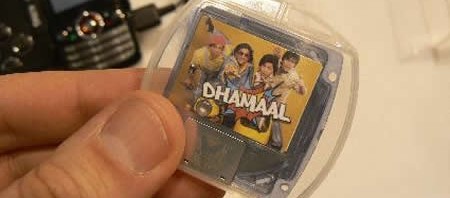 The thing going for the Movie Phone by Indian handset manufacturer Spice is that it features a built-in optical disc drive for playing movies. The discs are a proprietary format, but they use blue laser technology, and the compression uses the H.264 standard. The phone sports a 2.8” screen and the headphone jack can also be used as a TV-Out port for hooking onto a big screen. The movie disks are to be loaded onto a tray at the back of the phone. Apparently you can fit a two-and-a-half hour film onto one of the discs but since Bollywood movies are a bit longer than that, if you tweak the compression a bit more then maybe you can fit in more.